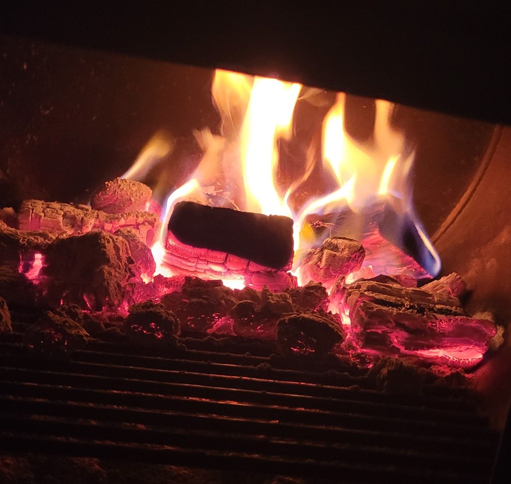 Fill the charcoal chimney with lump charcoal, and place loaded chimney on top of your fire starter, and light. Once the lump charcoal is heated, add to your firebox. When you have a good bed of coals add the wood.